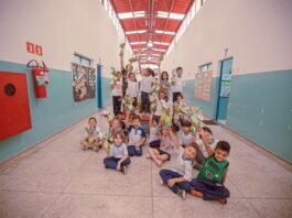 Distribuição de ovos de chocolate e de jogos pedagógicos para estudantes...