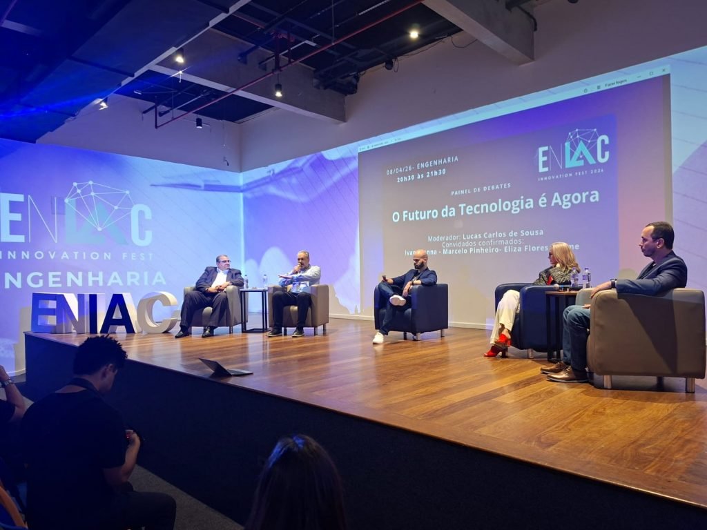 Na quarta-feira (8), o painel “O Futuro da Tecnologia é Agora” foi moderado pelo professor Lucas Carlos de Sousa. Os painelistas discutiram a evolução industrial em direção à Indústria 5.0 e a importância da inteligência artificial no ambiente corporativo.