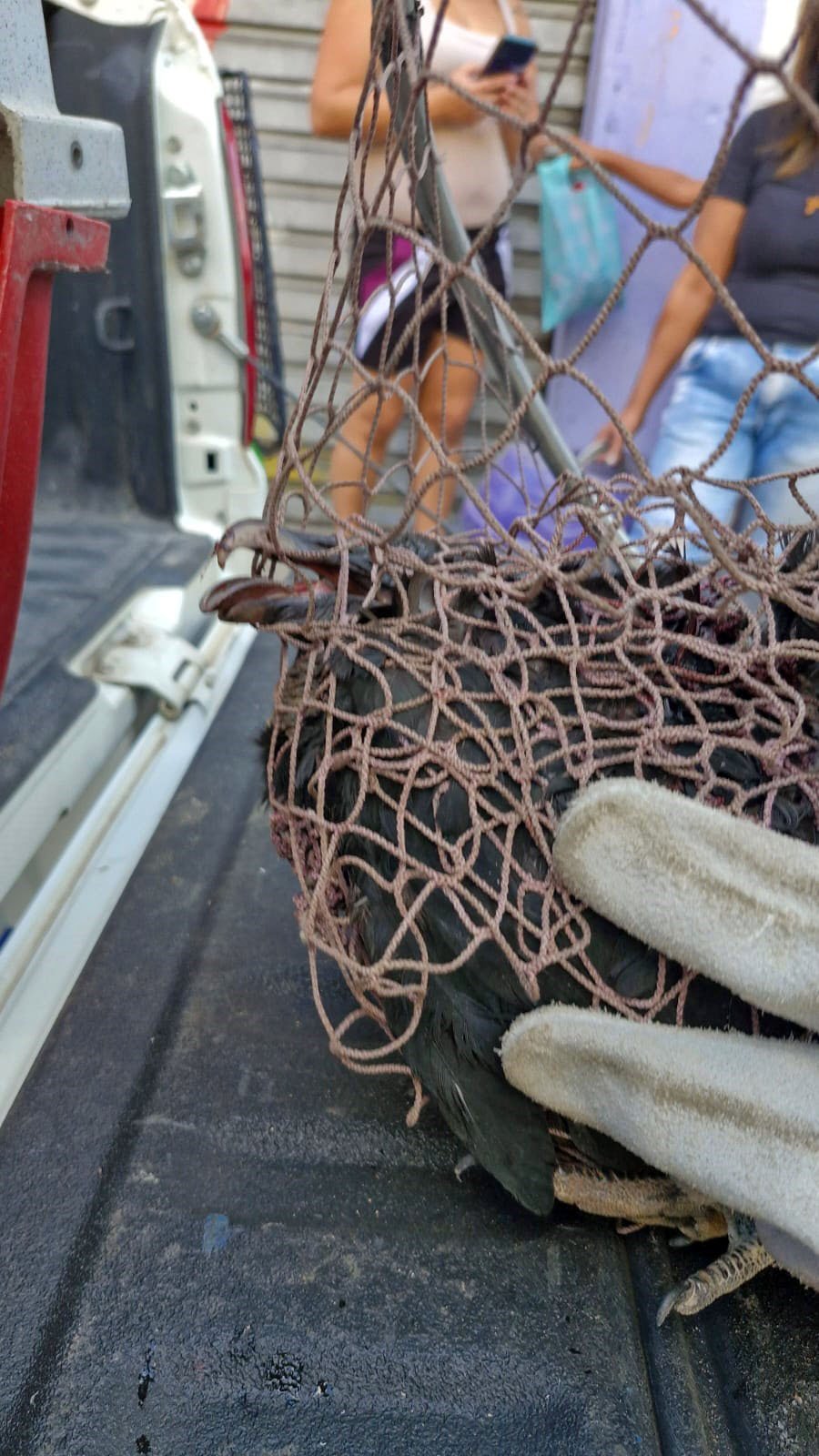Uma equipe compareceu ao local e conseguiu capturar a ave em segurança e acondicioná-la em caixa de transporte adequada, encaminhando-a ao Centro de Triagem e Reabilitação de Animais Silvestres, ficando aos cuidados de veterinários.