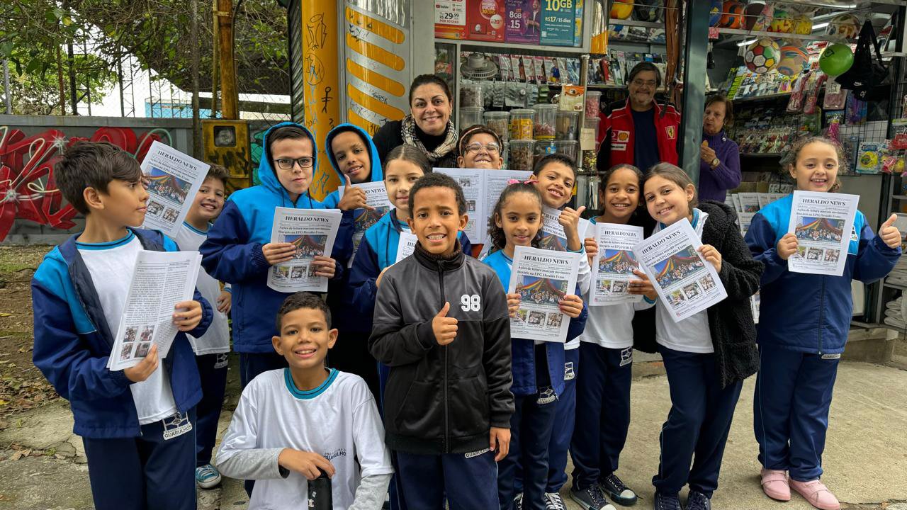 Os alunos do 5º ano da professora Nilva Novaes participaram ativamente da seção Reportagem Especial com informações sobre o combate e resultados do projeto Juntos Contra a Dengue, ação de grande interesse público. “O jornal Heraldo News e a iniciativa de divulgação e distribuição envolvendo as famílias e toda a comunidade fazem toda a diferença na formação de nossas crianças, pois as tornam protagonistas do trabalho que realizariam anonimamente se não houvesse a publicação. Tenho muito orgulho de fazer parte dessa equipe”, comemorou a educadora.