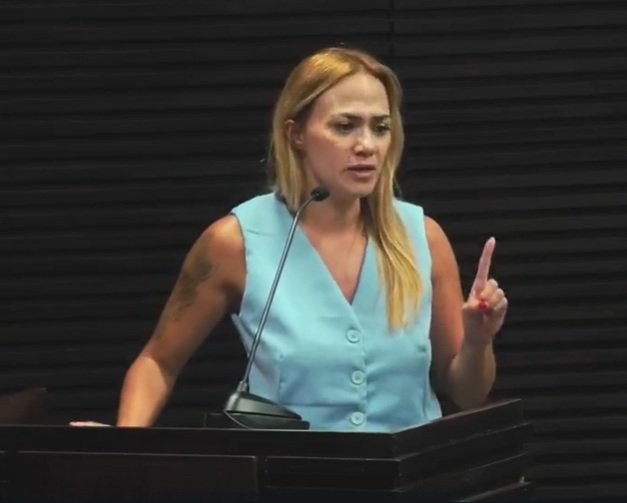 Juliane Tenório Ferreira, mãe e líder do movimento de mães atípicas, manifestou-se nesta quarta-feira (8) na Tribuna Livre. Ela demandou respostas da gestão de Lucas Sanches (PL) sobre a decisão de retirar professores auxiliares das salas de aula.